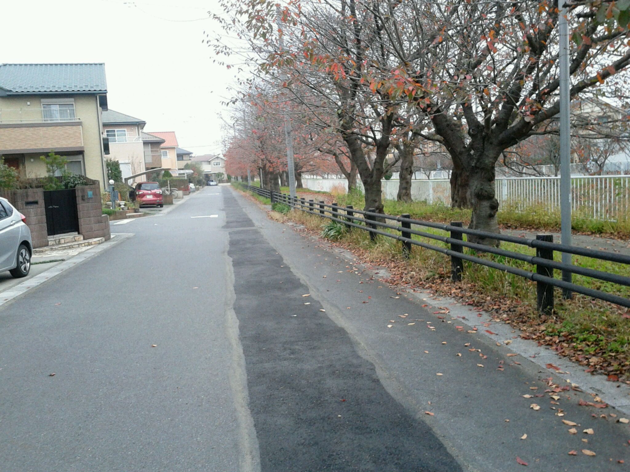 栗橋西中学校(左奥)の南側を走り、佐間浄水場へ向かう道路です。