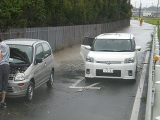 久喜市内でも各地域で集中豪雨となり、道路冠水や住宅地にも濁流が押し寄せました。久喜北、久喜本地域も被害がでました。 幸いにして長時間の集中豪雨ではなく、床上までの被害になる寸前で水が引きました。それでも写真のように久喜北陽高校付近では道路が冠水し、深みにはまった乗用車がエンストし、久喜本地域では住宅地の道路に濁流が押し寄せ,危うく床下にまで滲出する寸前でした。