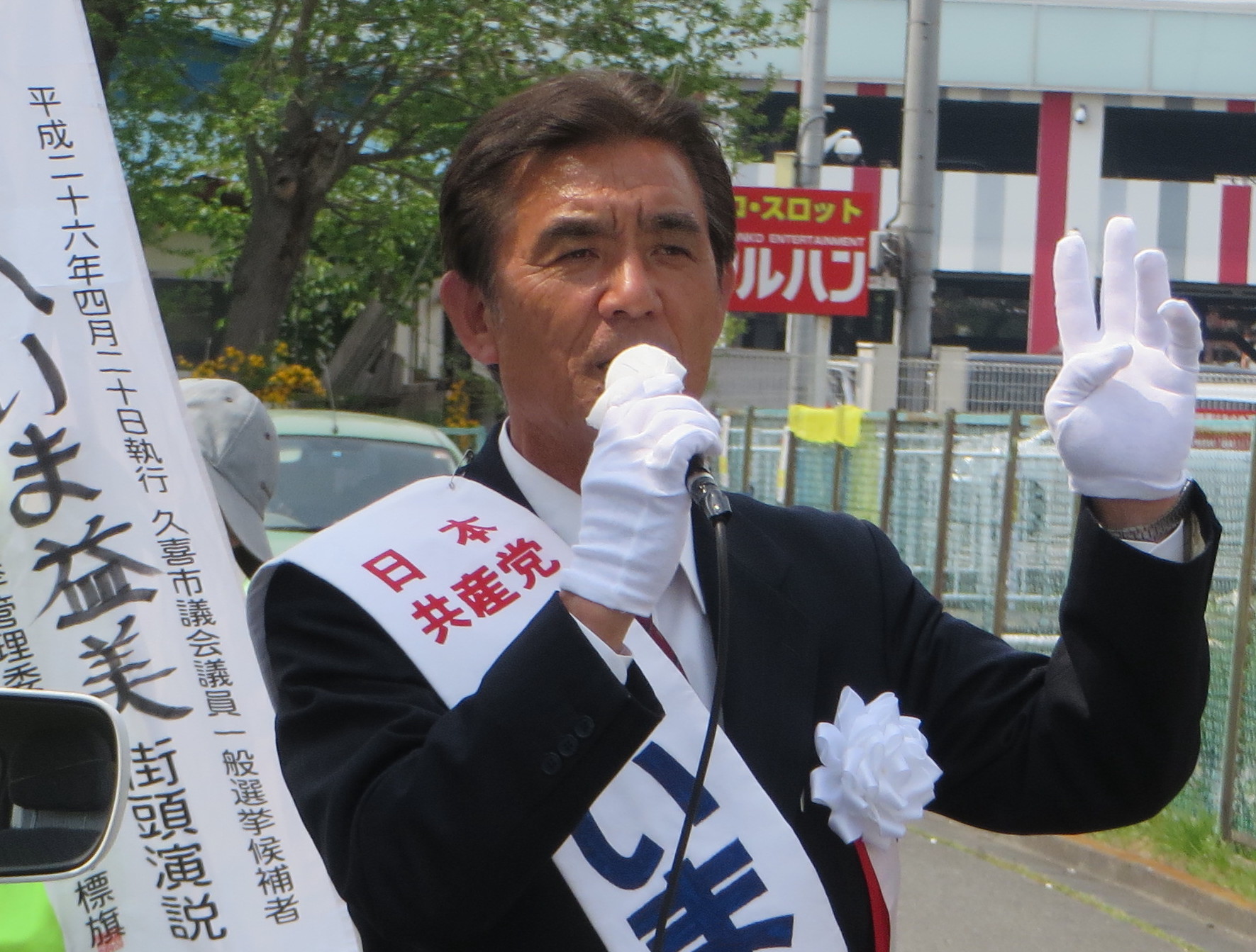 今月、消費税が増税されました。黙っていると、消費税は来年10月から、10%に引き上げられます。市議選で「消費税増税反対」の日本共産党に1票を投じ、久喜市から、安倍内閣の暴走ストップ!―この声を、大きく上げていこうではありませんか。