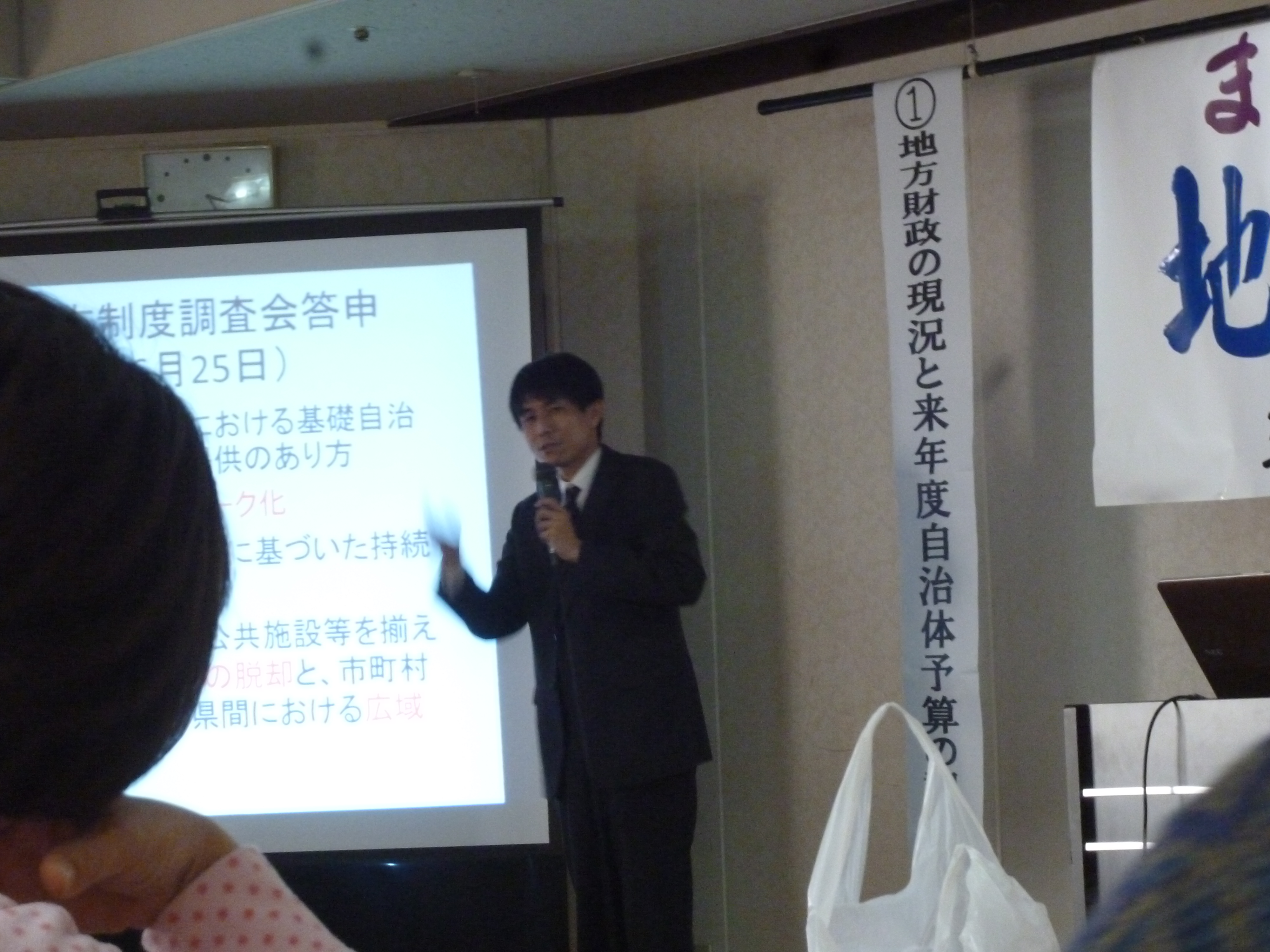 少し写真が暗いのですが、「地方財政の来年度予算の課題」「公共施設の維持管理計画のあり方」についての学習会に参加してきました。
