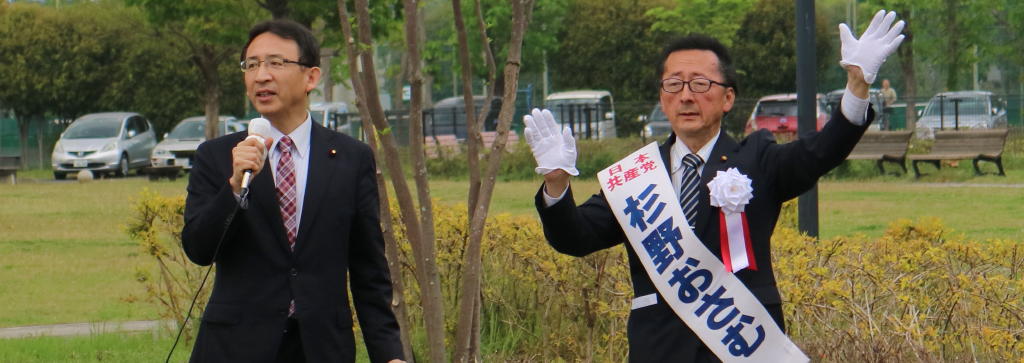 (塩川てつや衆議院の応援を受ける・杉野おさむ候補)