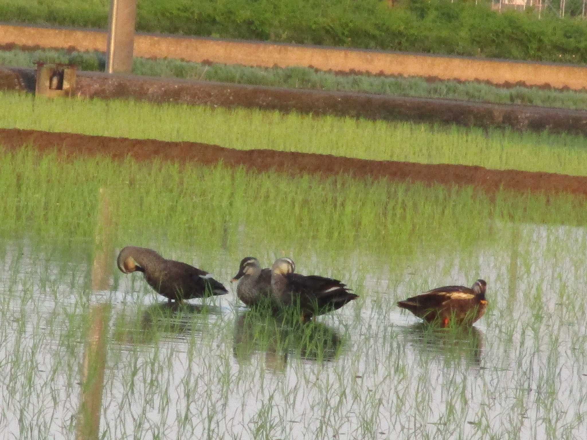 連休前から、市内各所で田植えが行われている。この時期は、一般車よりもトラクターや田植え機の方が優先して道路を走る。そして 苗を植え終わった田んぼの上をツバメが飛び交い、鴨が泳ぎ回っている。