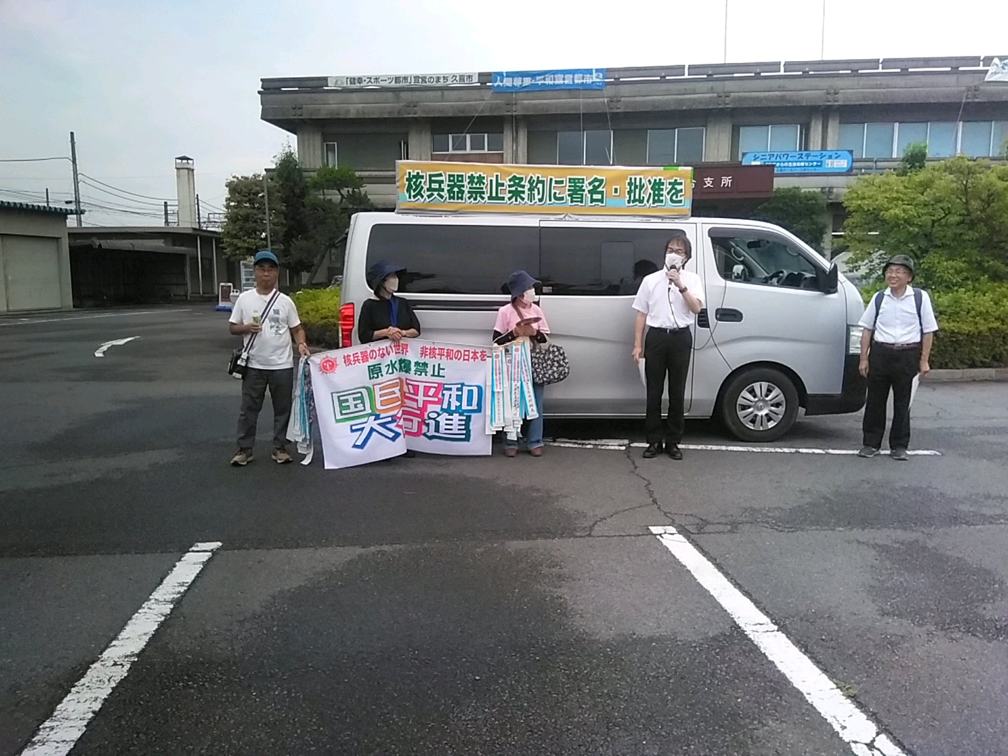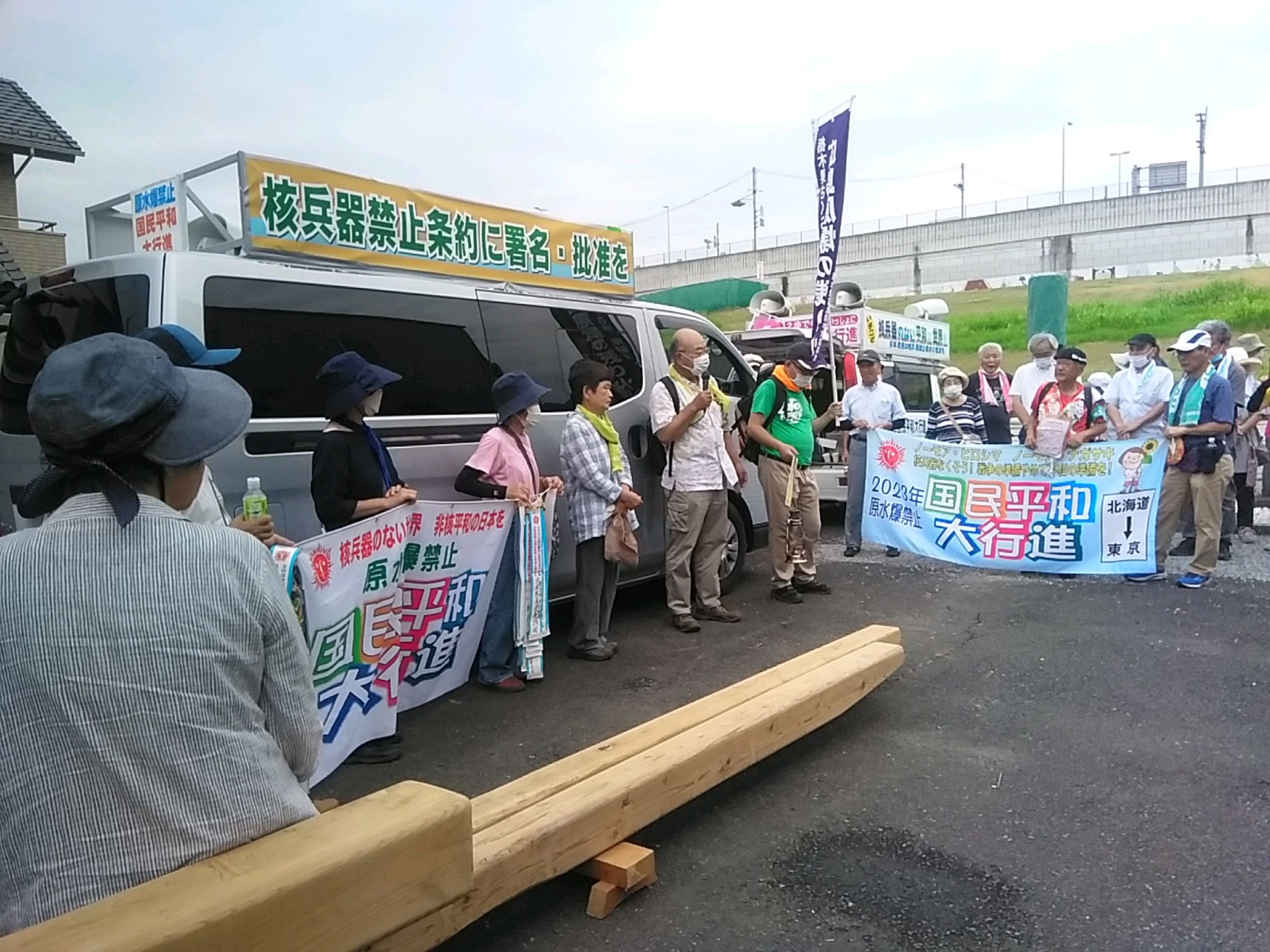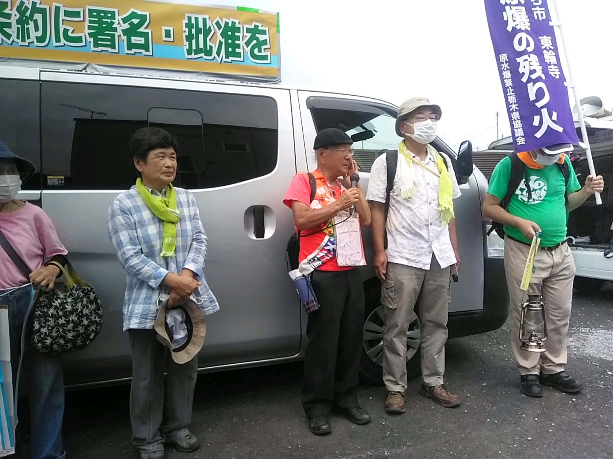 出発にあたり、共に核廃絶を願っていますと、連帯の挨拶、行進への激励の挨拶をいただきました。蒸し暑い中ですが、元気に行進しました。
