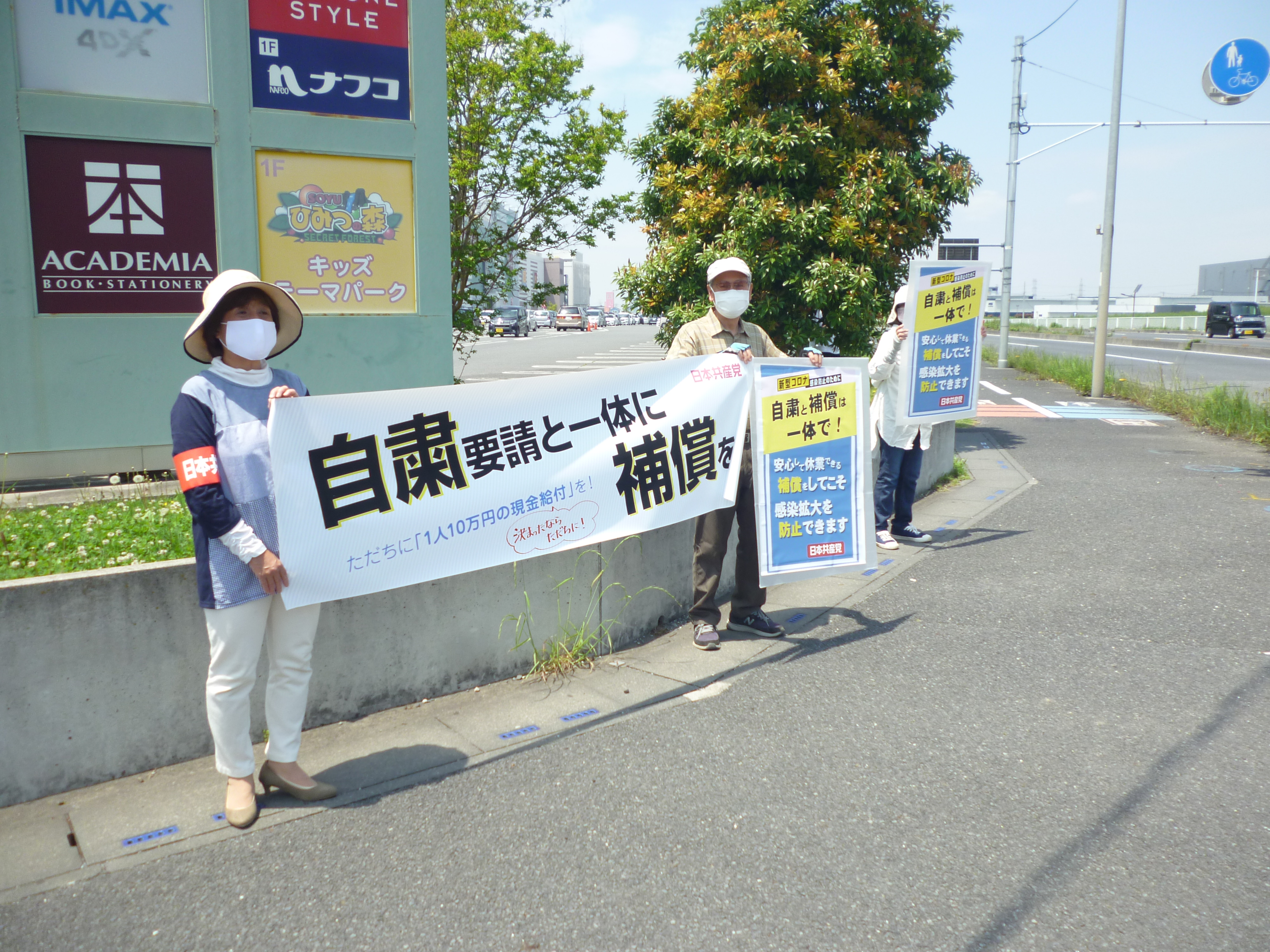 自粛要請は補償と一体に 街頭で感染対策とりながら訴え