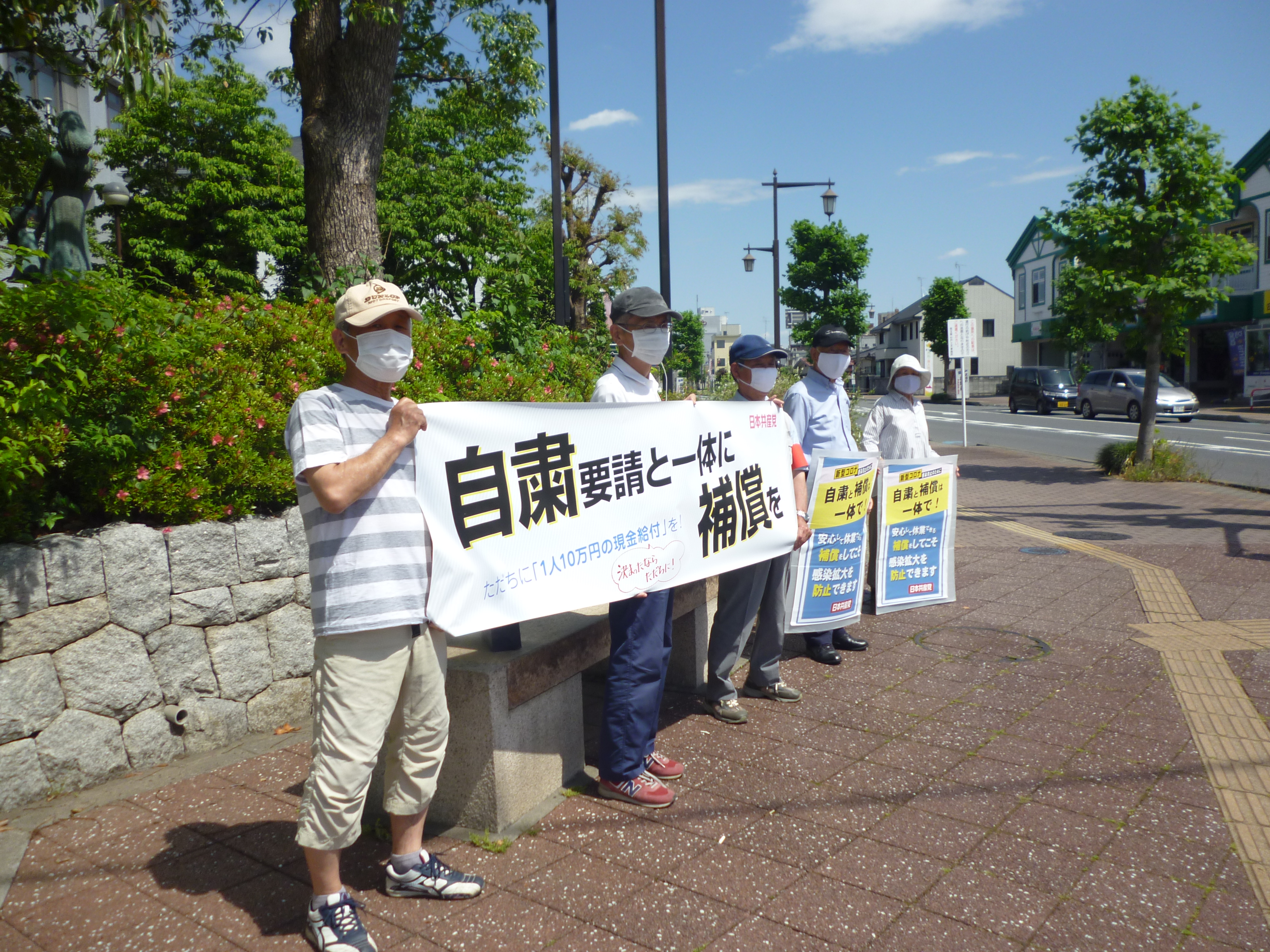 5月17日(日)とても暑い中、中央公民館前でスタンディングをしました。