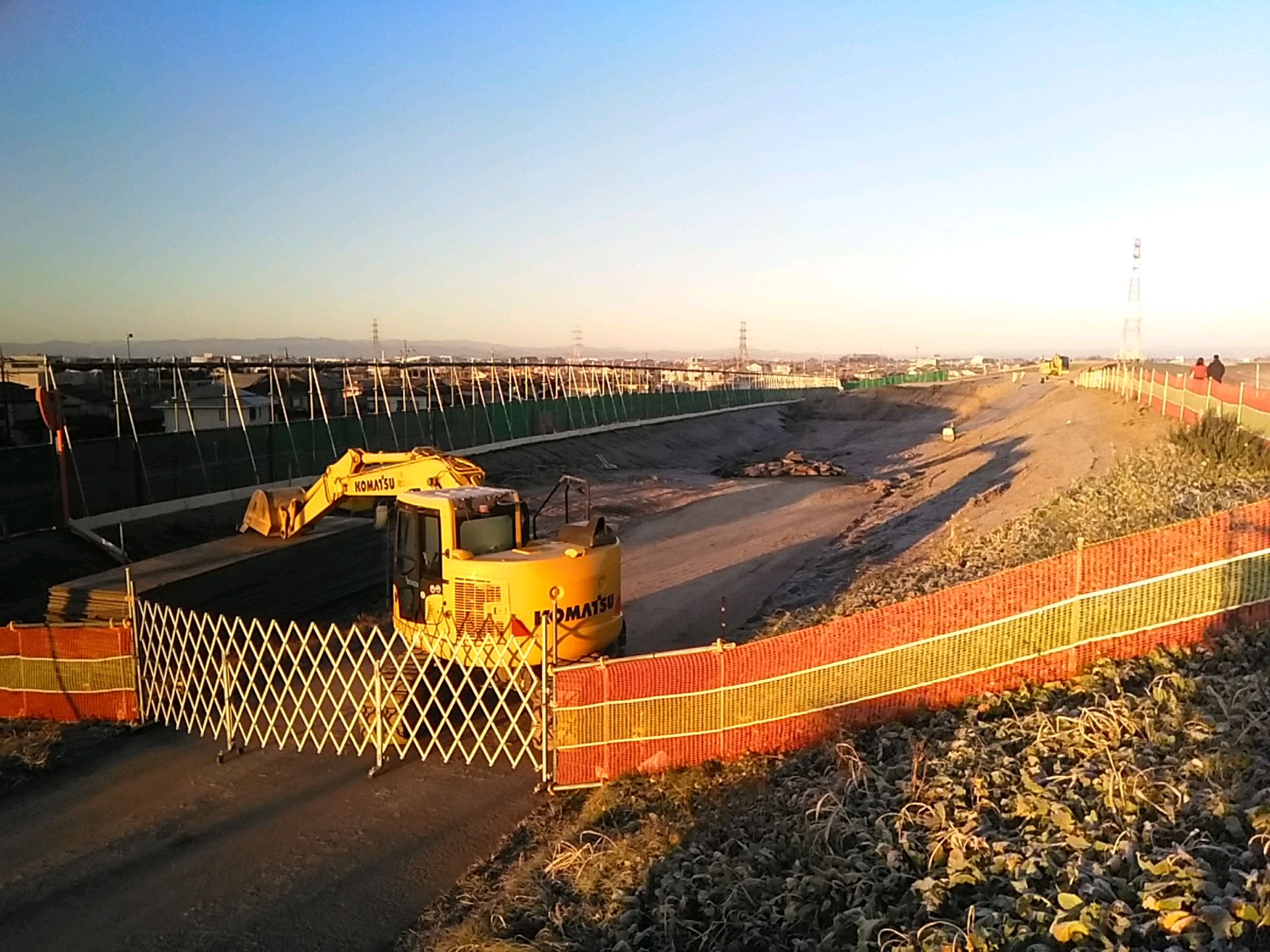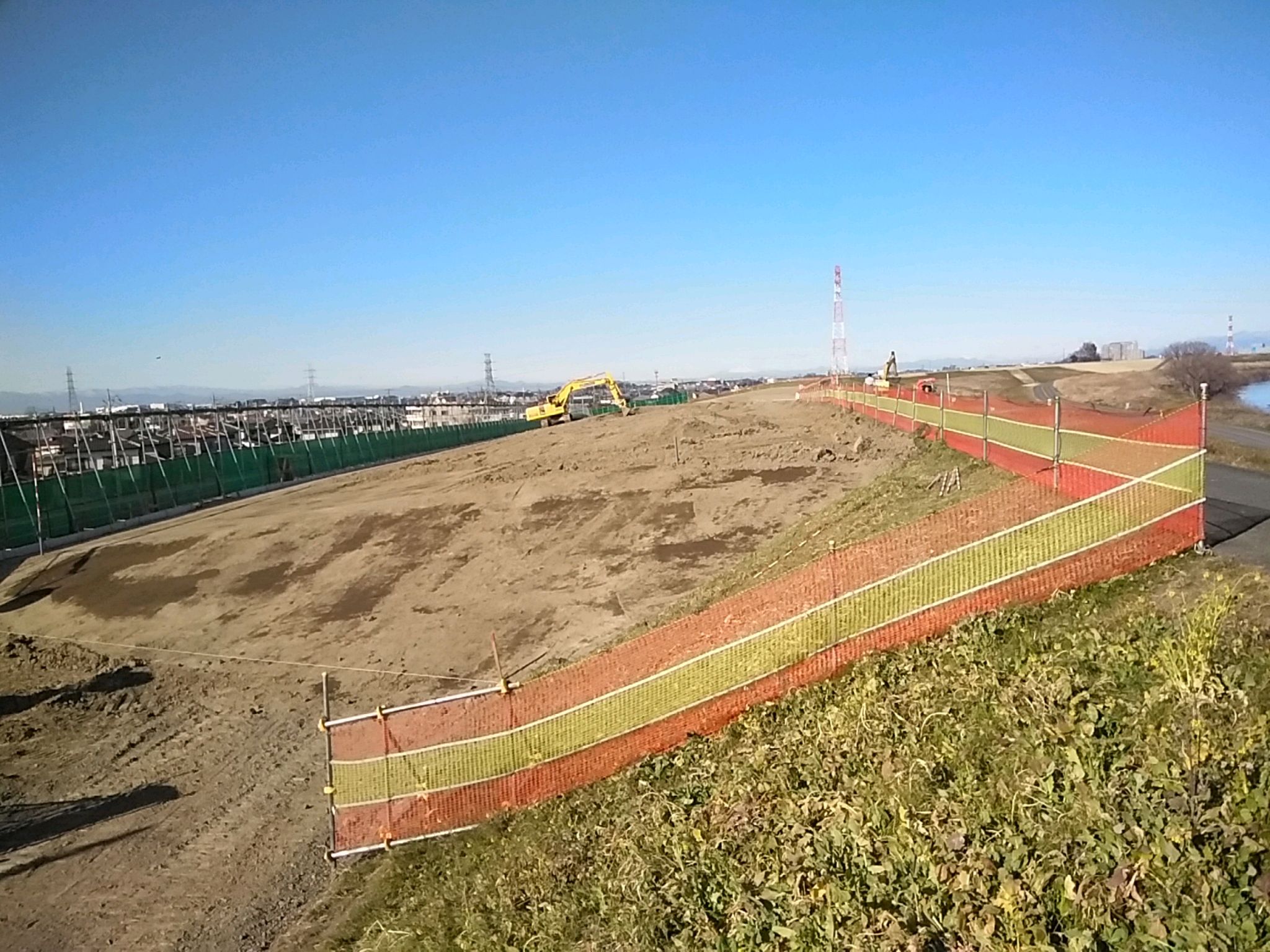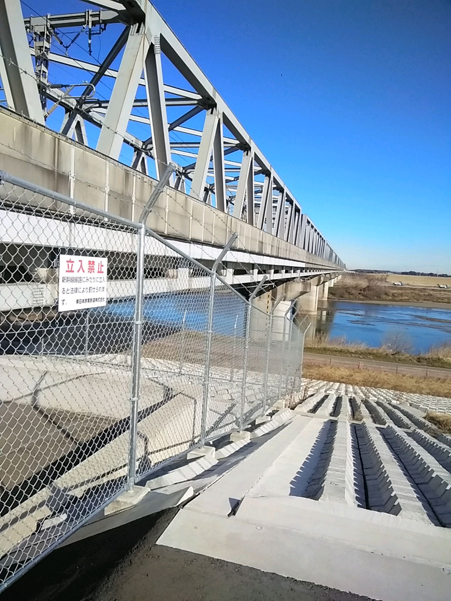 2023.01.26日撮影 栗橋と五霞町の境に走る新幹線、2019年の台風19号の時にはこの場所が、もう少しで越水するところでした。 その場所は今、写真のように強化されました。