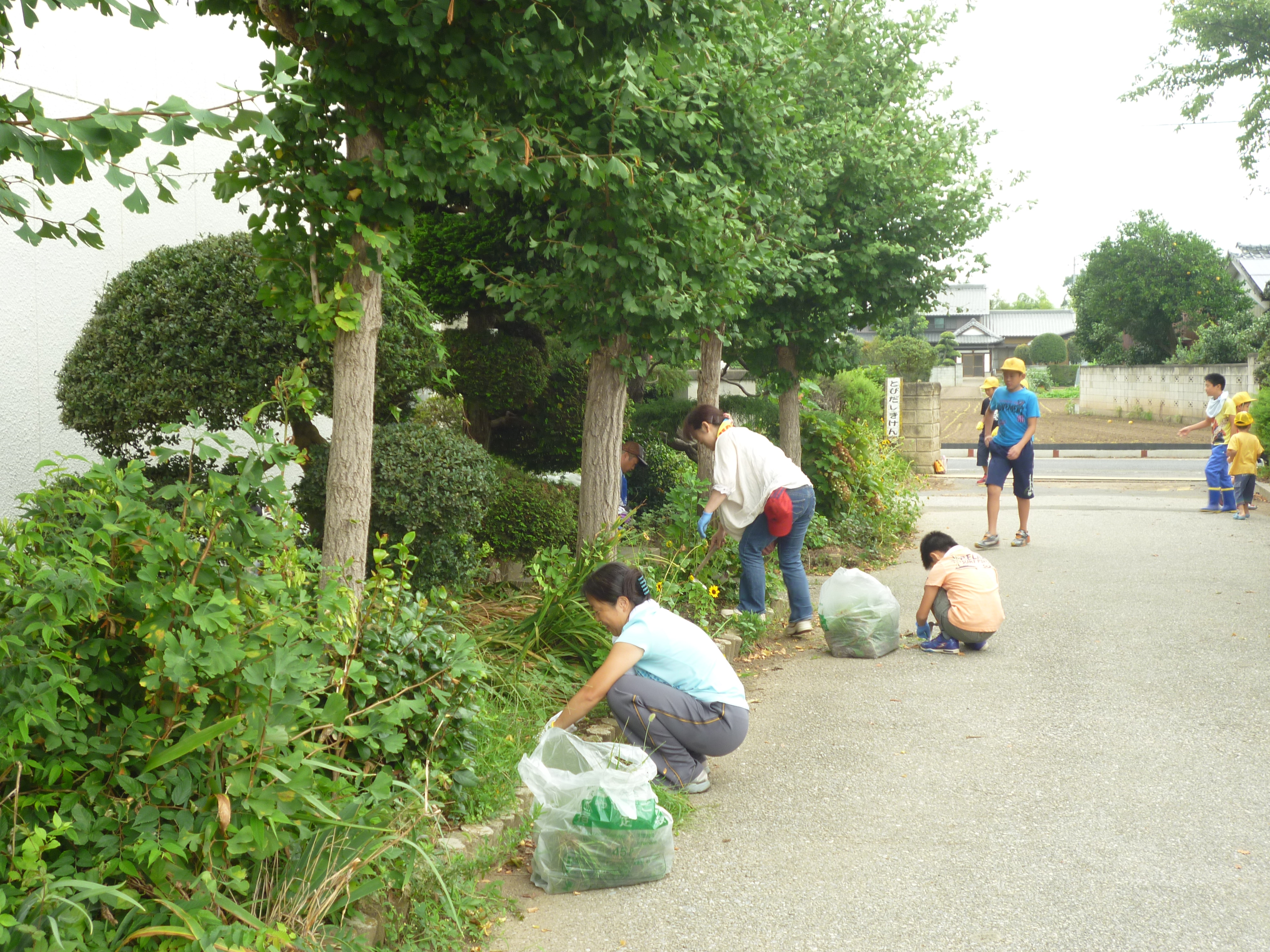 清久小学校の全校児童保護者の草取り