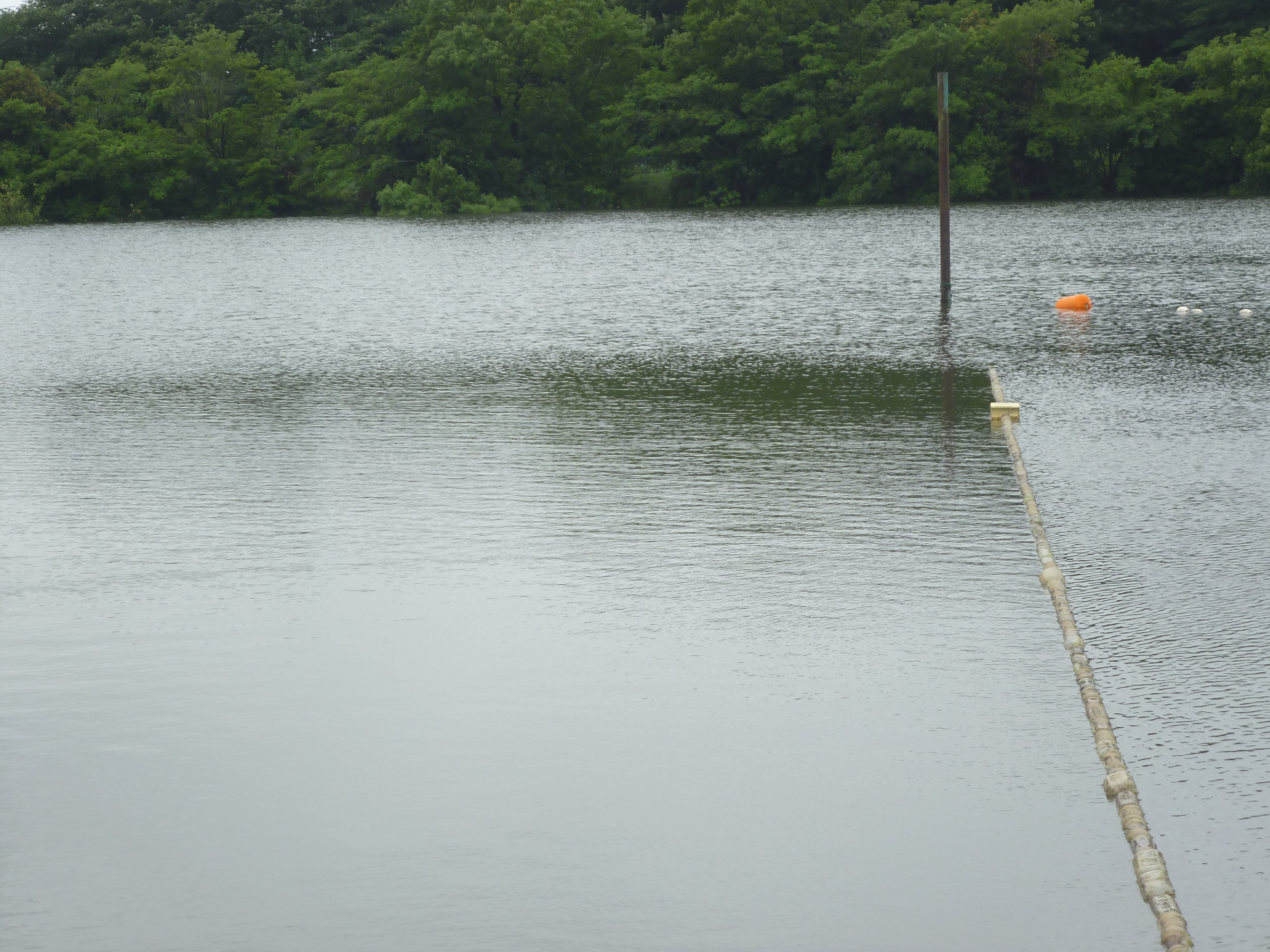 清久工業団地内の市営釣り場が、6月7日夜から8日朝にかけて降り続いた雨の影響で、これまでにない水かさとなりました。